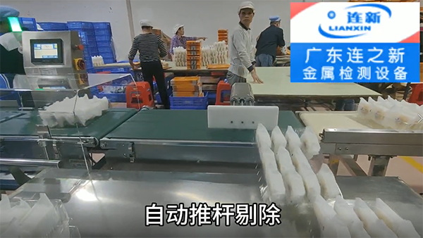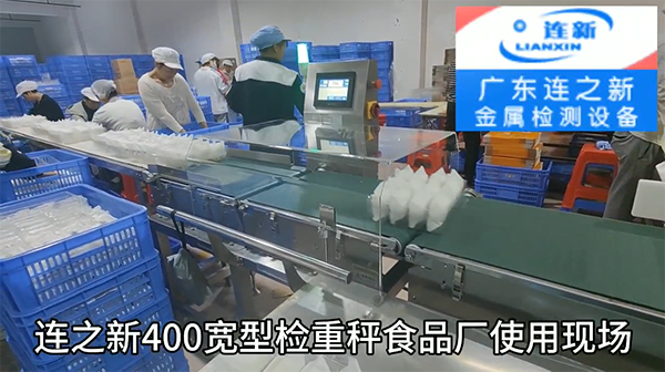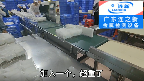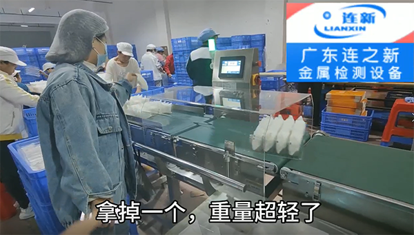 廣東連之新自動(dòng)重量選別機(jī)現(xiàn)場(chǎng)使用圖片,重量超輕或超重都能自動(dòng)選擇剔除。