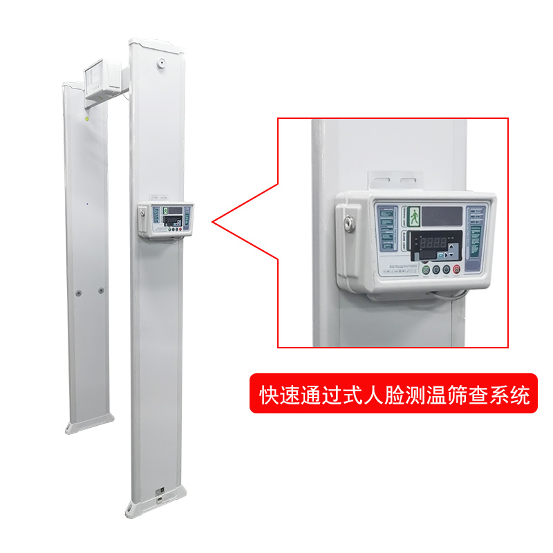 人體測溫安檢門一體機II型遠距離高精度人體測溫安檢門,集帶人體溫度檢測和金屬探測為一體的安全檢測門,門頭裝有高精度的體溫檢測探頭,探測角度可以上下移動, 能夠測量人體額頭的表面溫度,然后根據人體額頭的溫度與體溫的關系得到人體的實際體溫。檢測儀的光學組件將額頭發射和反射的能量匯集到傳感器上,通過電子組件將此信息轉化成溫度讀數并顯示在顯示面板上,當溫度讀數超過高溫報警值時,儀器會發出報警聲.報警溫度可隨意設置.具有防水、防火、防腐等特點。適用于管制刀具和槍支等危險品的安全檢查,廣泛應用于適用于機場,車站,出入境檢查站,等人員密集場所。是防止疫情擴散的有效手段。